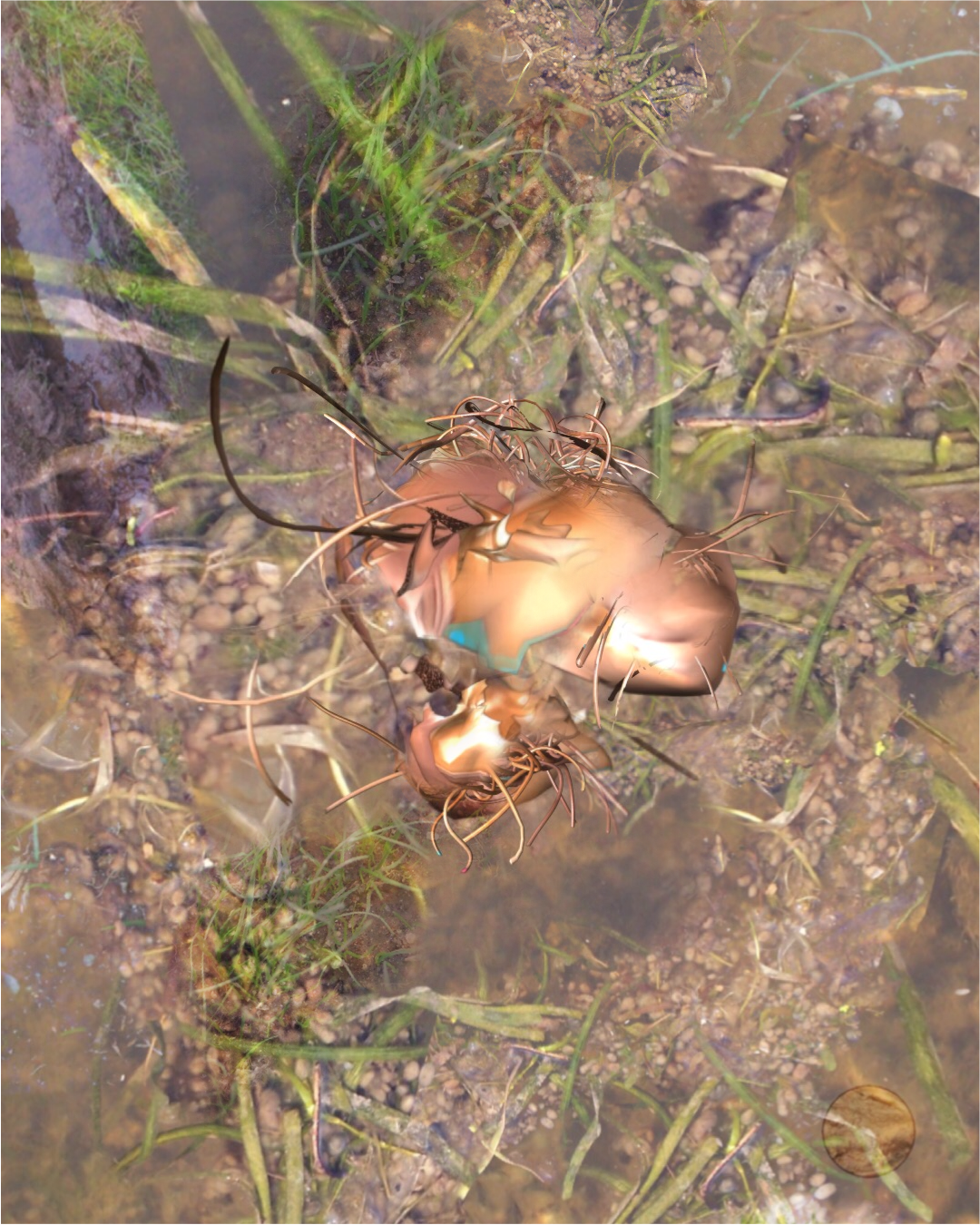 a glint of a torso, arm and, head, the individual shoot of a bamboo plant twisted and crowed with leaves