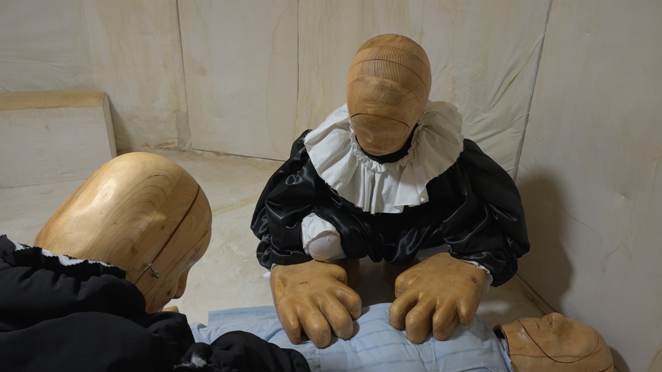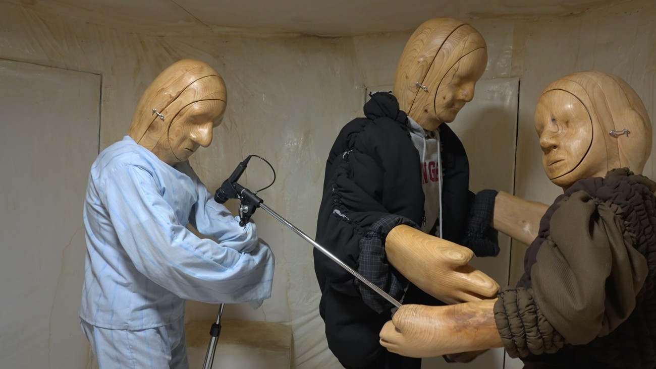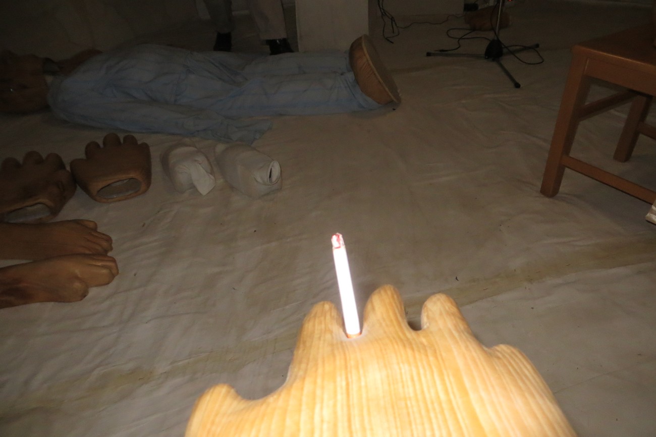 A: Outside this room there is nothing, everything is dead, everything is over. There’s just this circular room with exit doors and entrance doors, so even if they can’t stand each other, they always come back to this space because it’s better to be with people you hate than to be with no one at all. Outside this room there’s nothing and nobody.