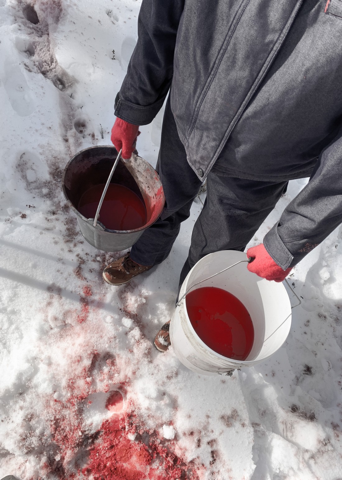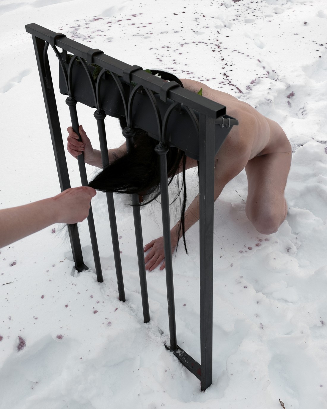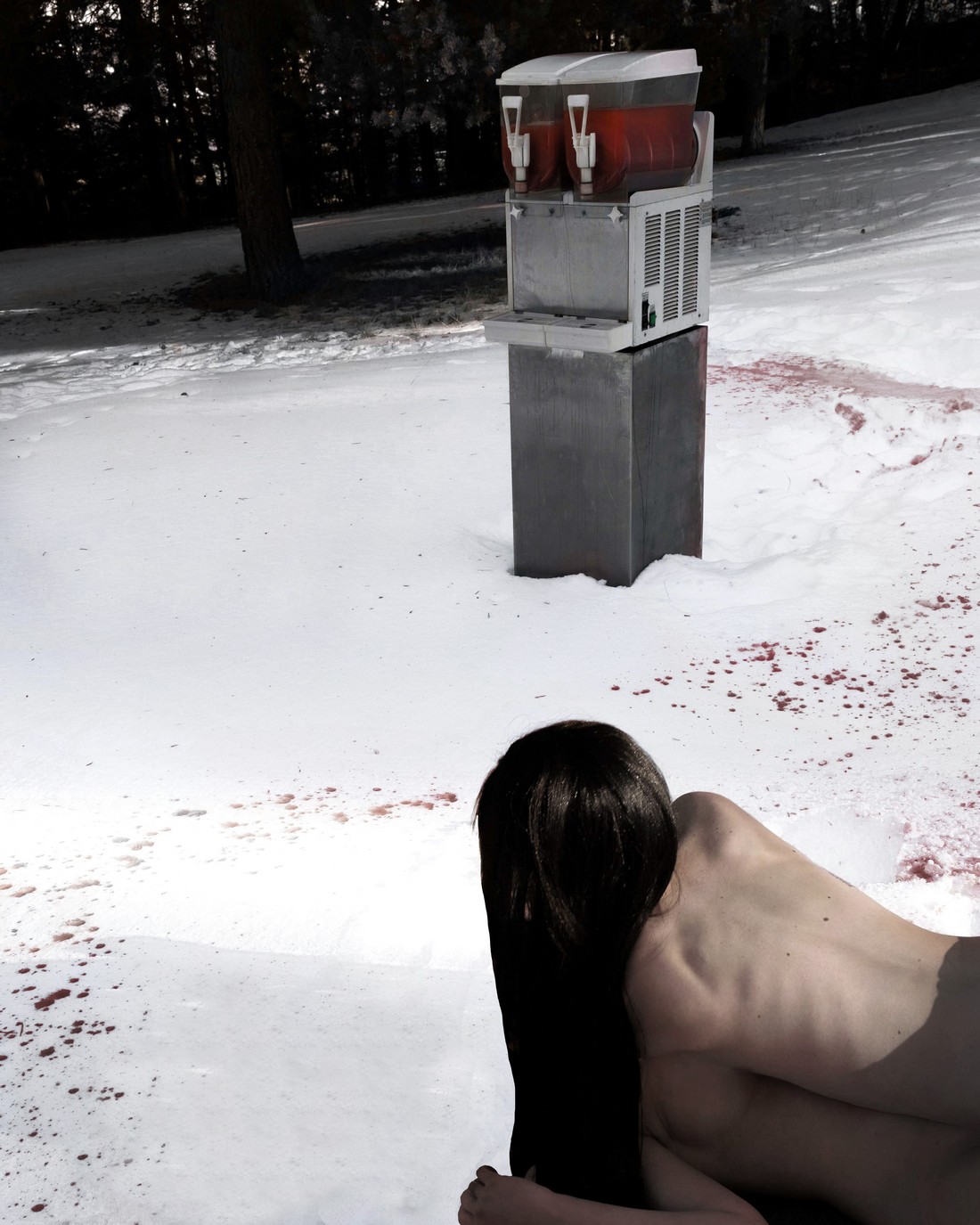 Engine running and ice crushed, Carence questions the possible relationship of human-machine romance. Both in its toxic relationship and in its interdependence, it explores this idea of controlled organic domestication. While the blood mixes, until saturation, the grenadine continues to turn without stopping, establishing a tension between violence, absurdity and vulnerability.