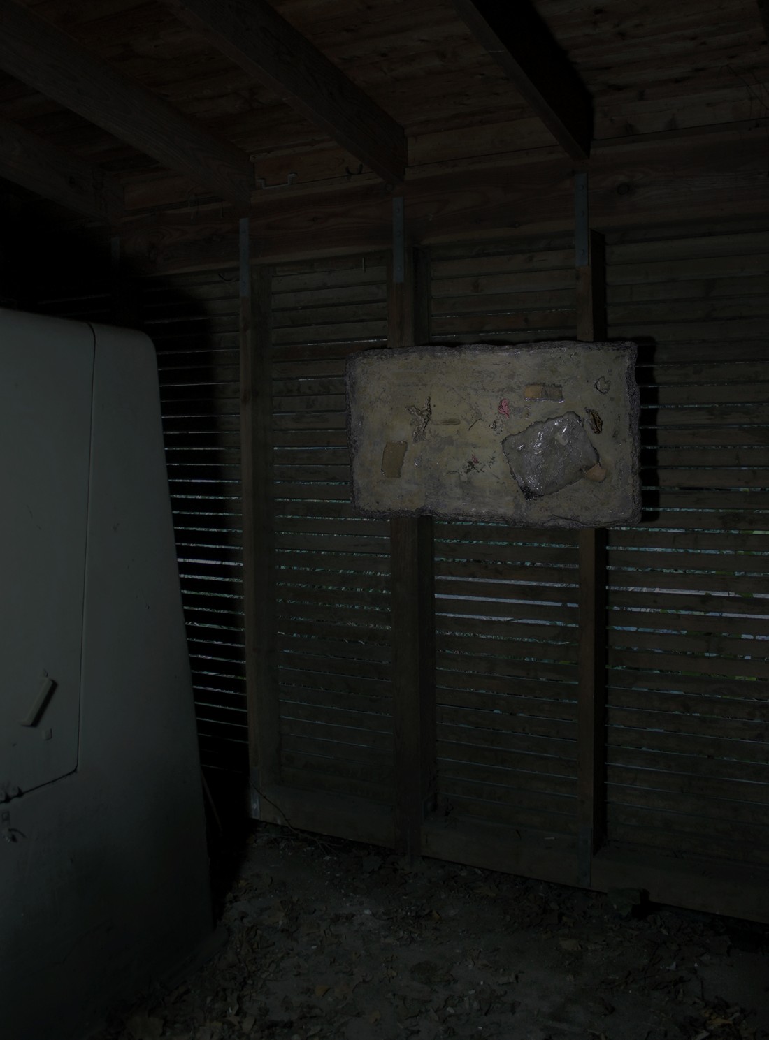 plaster, jesmonite pigment, epoxy resin, diary notes, digital print, reflex, mushroom,
