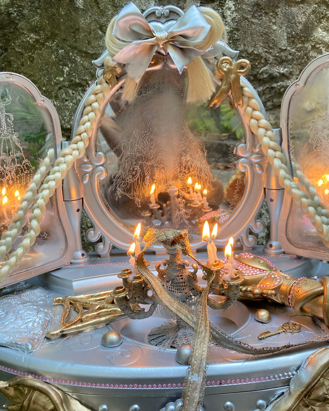These pieces bring together everything i admired and that still fascinates me, i.e. everything that glitters in my gynoecium and my reflection watching myself crying on my baroque plastic Disney dressing table.