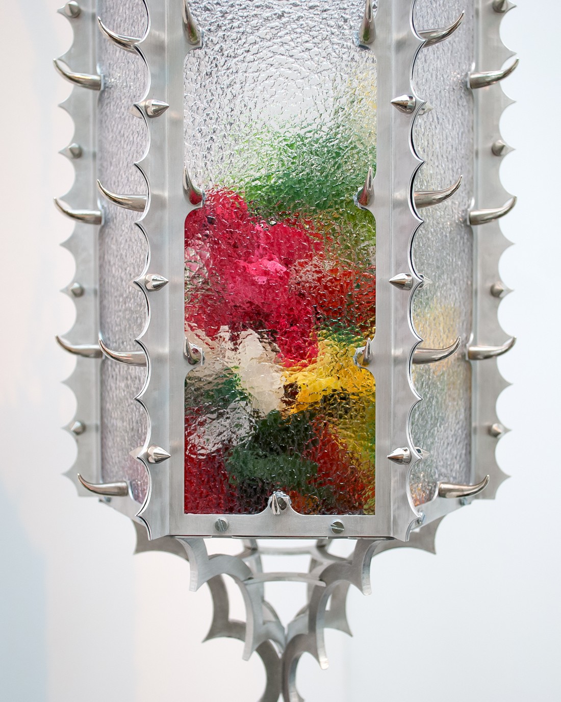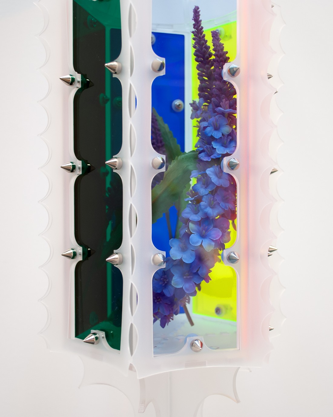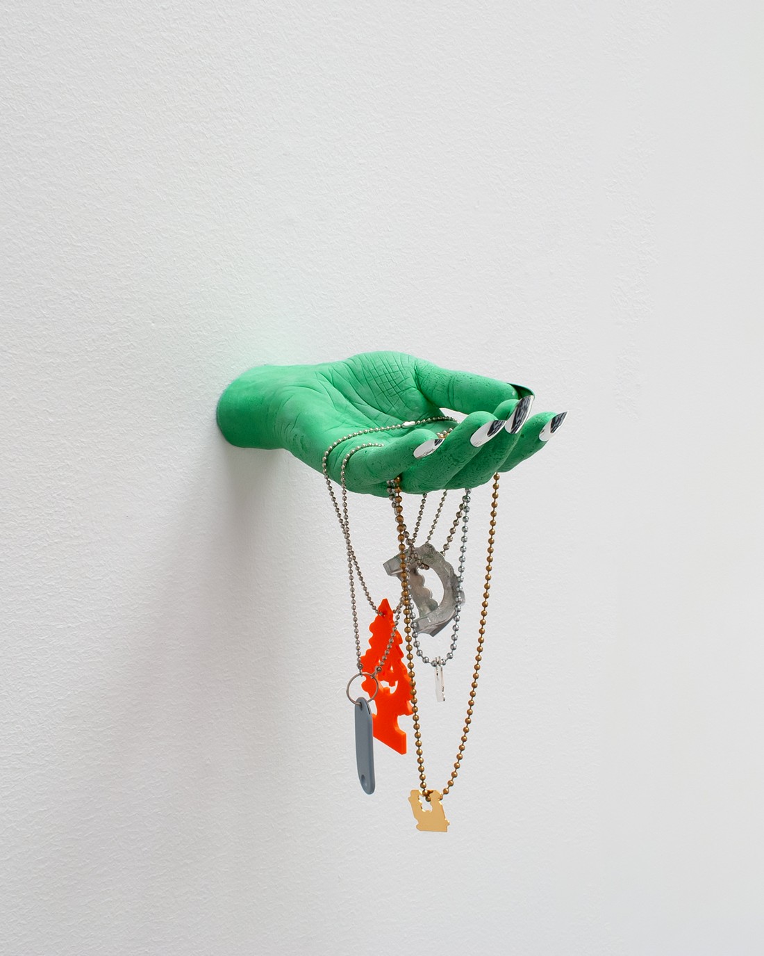 Your works seem to express a disrupted equipmentality; familiar at first glance, but removed from their daily moment. Likewise, contemporary objects bear motifs from the Middle Ages. These seem like artifacts from an impossible era when displayed in the timeless plane of the white cube. Do you feel a shift in the works between the gallery and the offsite? How does the setting change the meaning of the work for you?