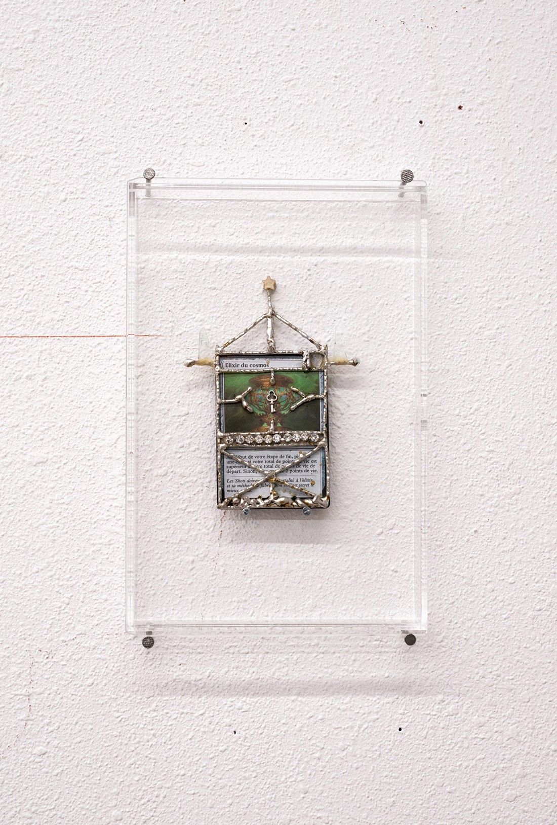 In this space, 3D models meld with the handicraft of a warrior’s helmet and stained glass windows, plant installations are made of beads and latex, and traditional painting is clad in pop colors. What is this strange era where themes, mediums, and symbols intermingle ?